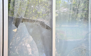 春日市(ガラス) 春日市で窓ガラス交換に行ってきました。ガラスに穴が・・。